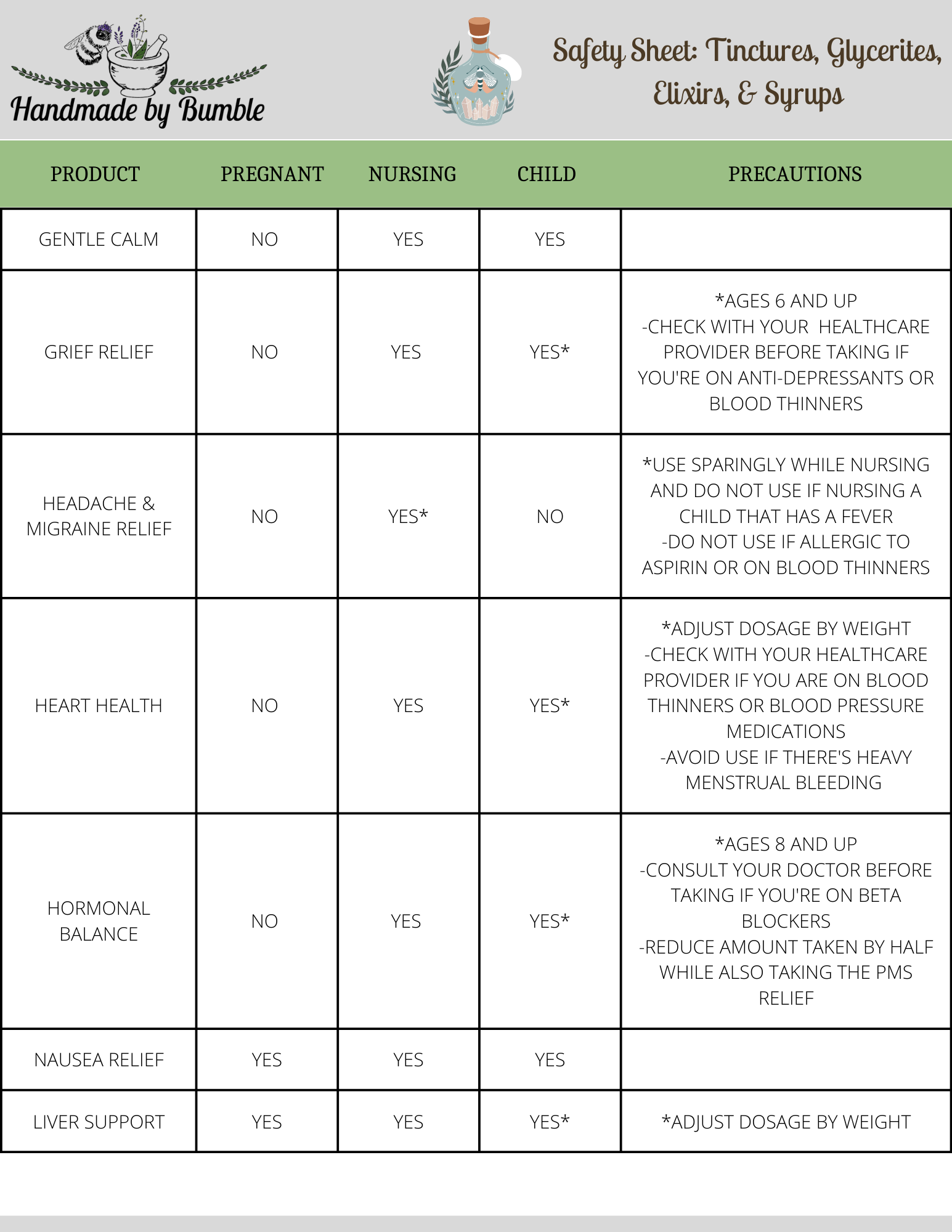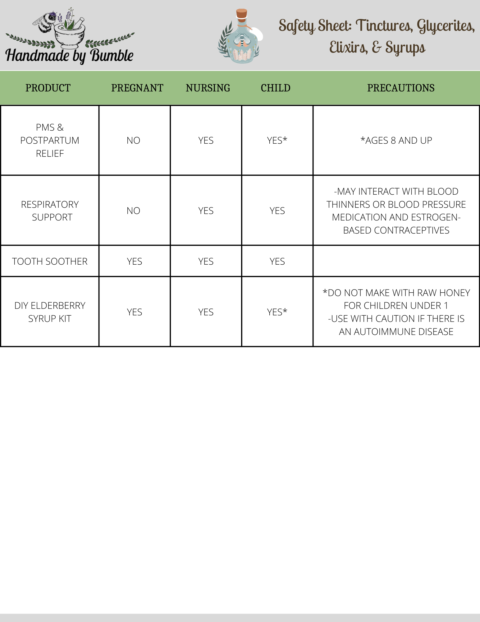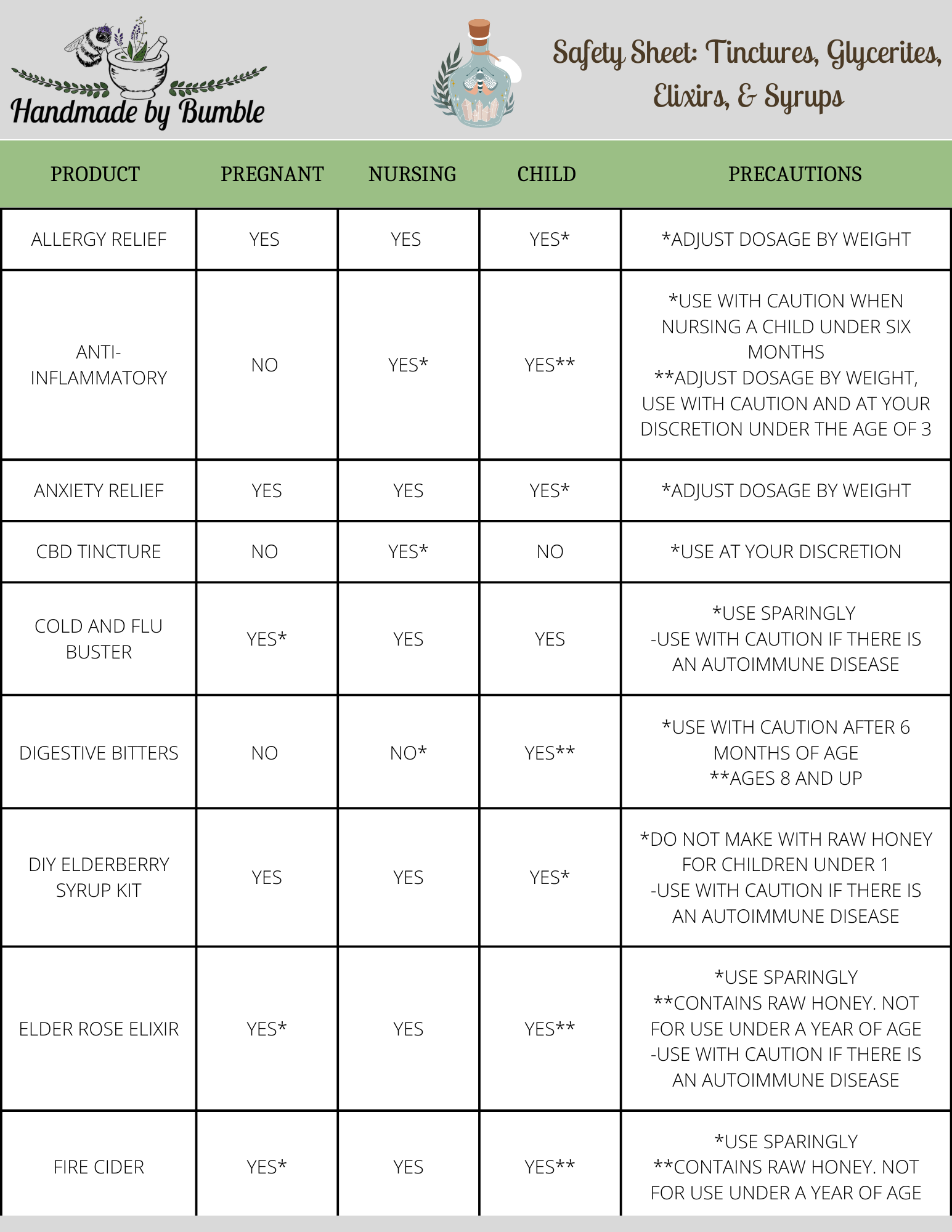 Safety Sheets: Tinctures, Glycerites, Elixirs, & Syrups