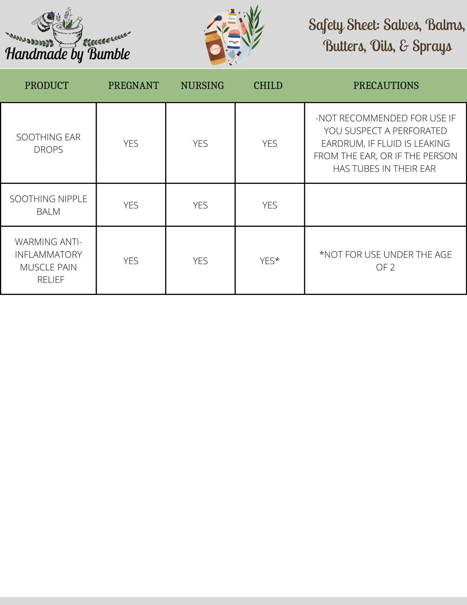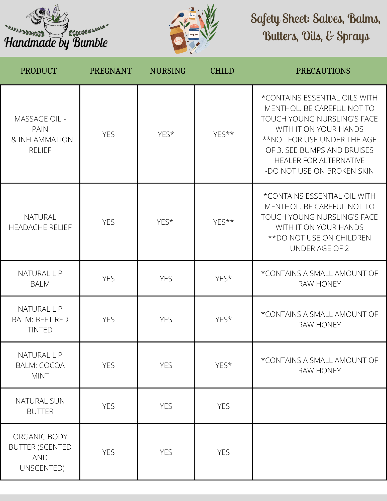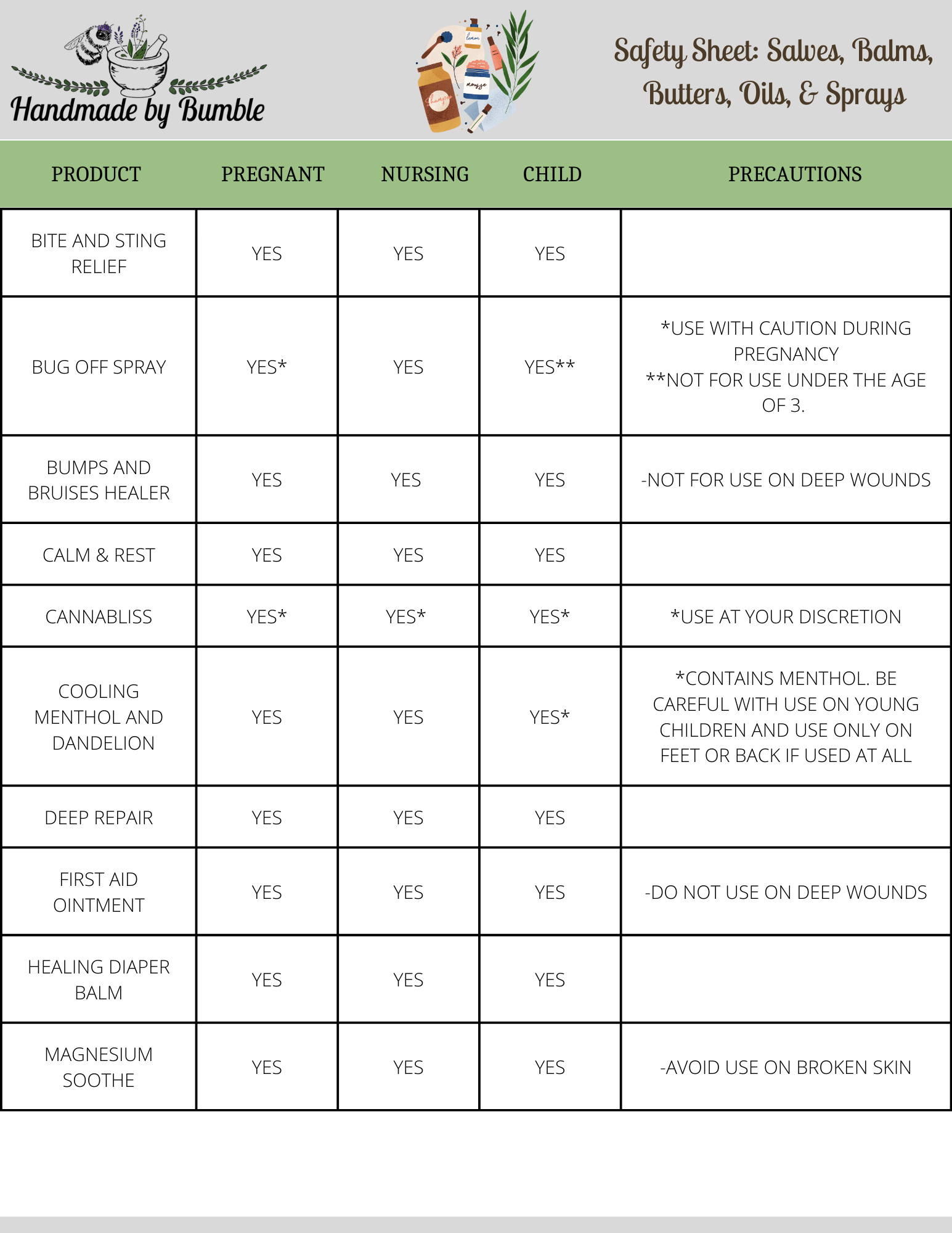 Safety Sheets: Salves, Balms, Butters, Oils, & Sprays